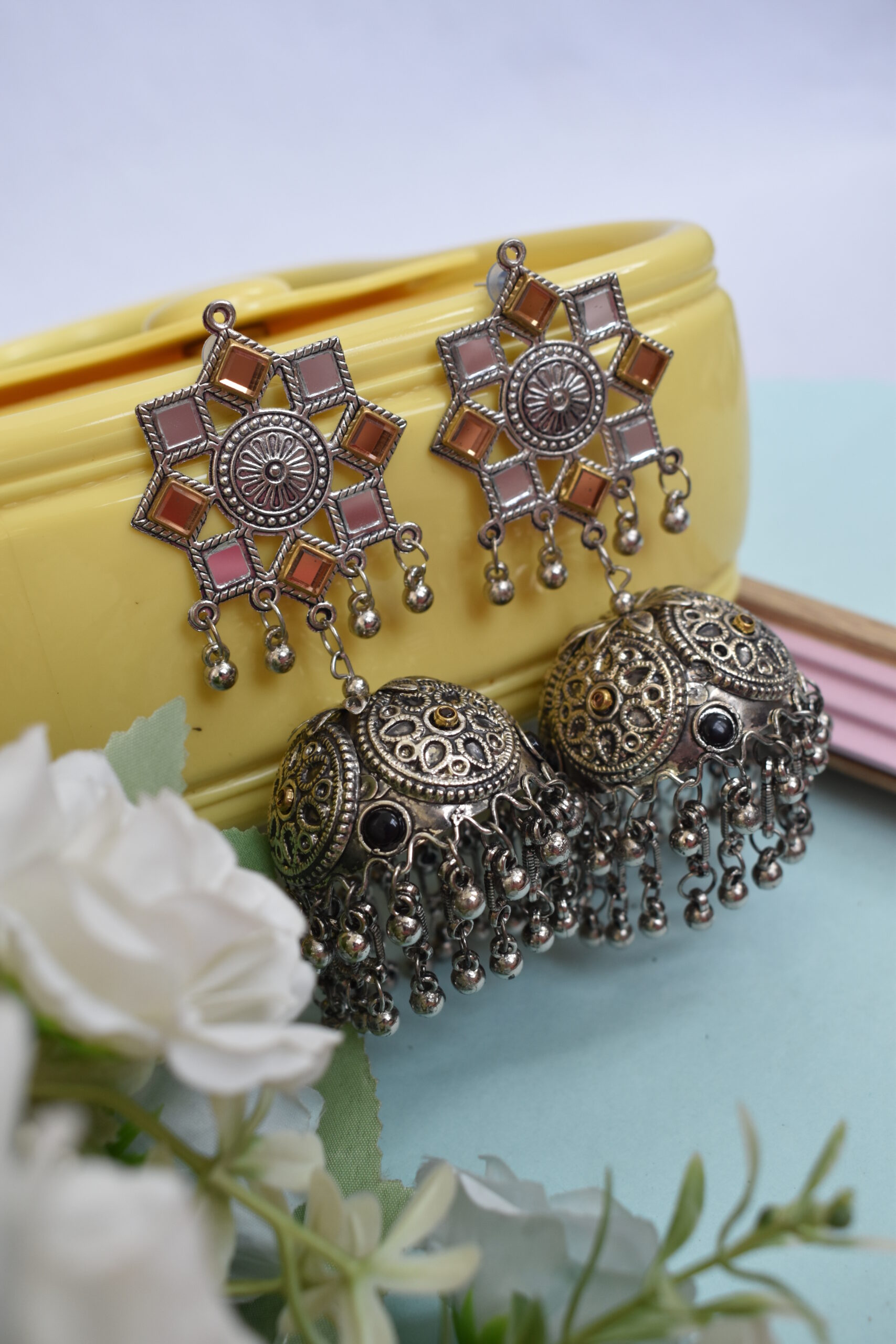Beautiful Traditional Big Oxidised Silver Pearl Jhumka Afghani Style Earrings – Perfect for Weddings, Festivals and Everyday Ethnic Fashion Lovers.