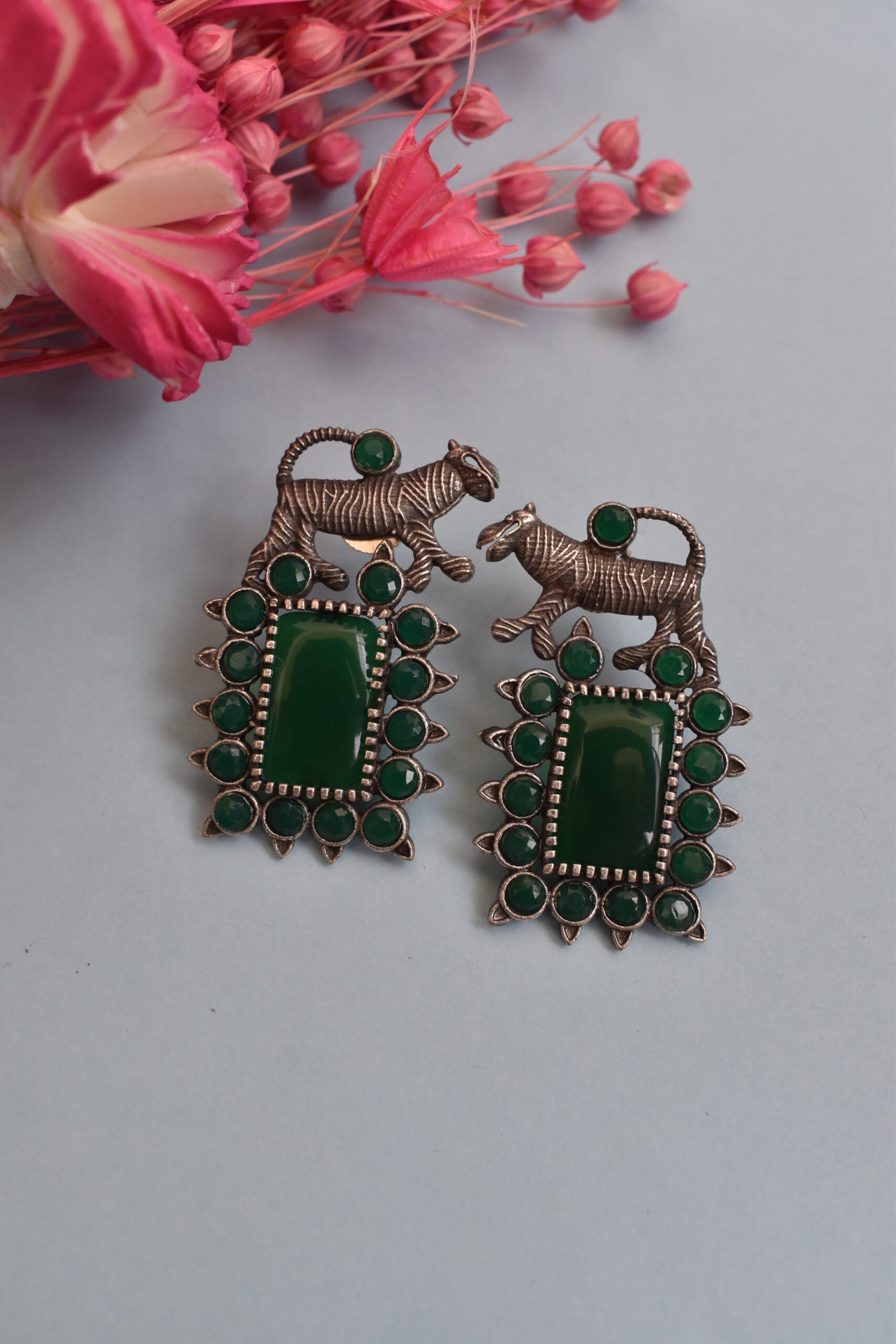 Shine bright with this elegant Silver Mirror And Pearl Mounted Earrings Set, featuring dazzling mirror accents and delicate pearl detailing — a perfect match for festive, bridal, or formal attire.
