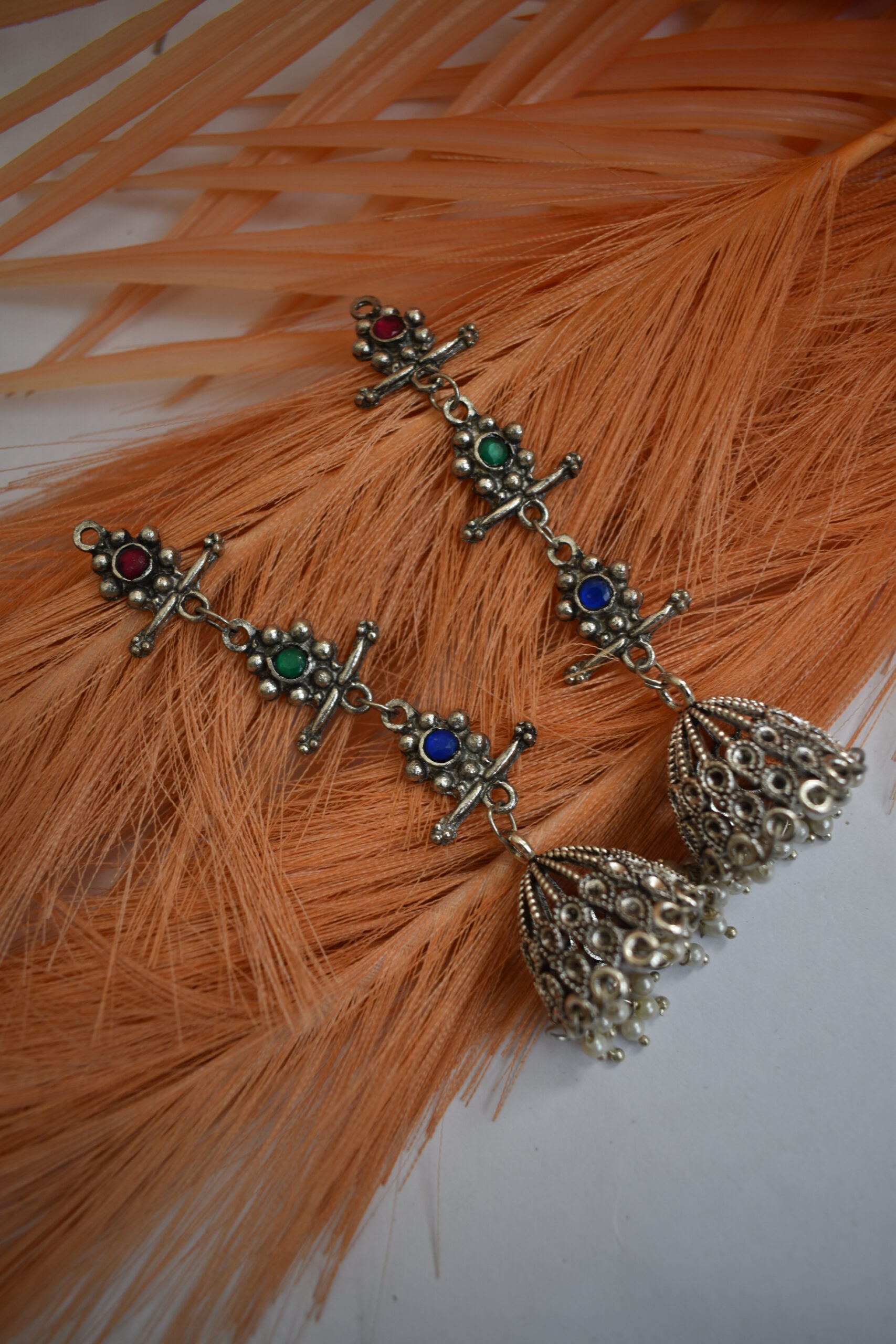 Shine bright with this Gold Plated Mirror Studded Beaded Earring Set, designed to bring elegance and festive charm to your ethnic wardrobe.