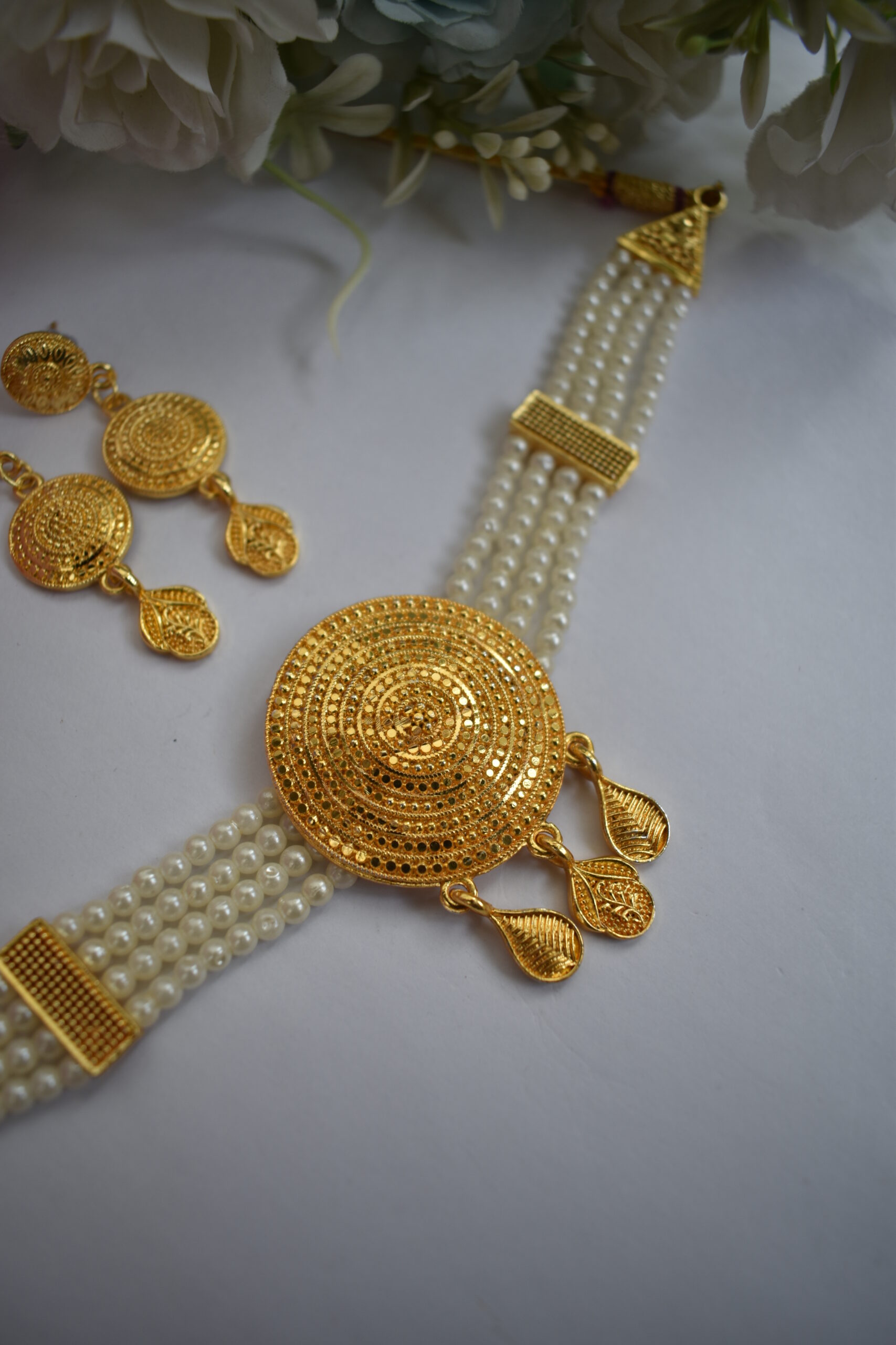 Tags: Gold Plated Choker, Beads Necklace Set, Ethnic Jewelry, Traditional Indian Necklace, Bridal Jewelry, Party Wear Jewelry, Handmade Jewelry Set